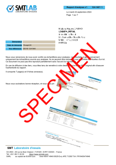 - Envoi des échantillons à notre laboratoire au 70 avenue Henri Barbusse, 93000 Bobigny – FRANCE.